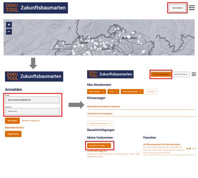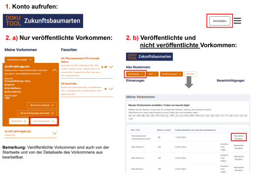 Um eigene Vorkommen zu erstellen und gewisse Funktionen des Tools wie Favoriten und Benachrichtigungen zu nutzen, brauchen Sie ein Konto.