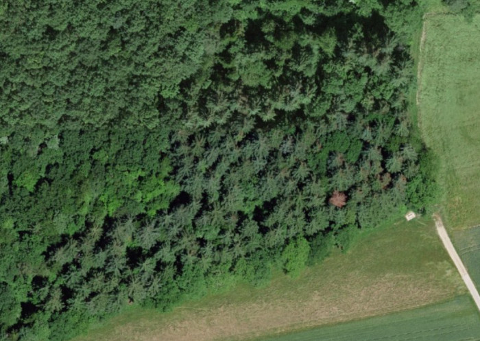 La plupart des douglas sont vitaux malgré parfois un manque d'éclaircie (couronne <1\3 de la hauteur de l'arbre). Descente de cime et brunissement/rougissement de certaines couronnes remarqué sur orthophoto 2023. Cause probable évoquée : "coup de froid tardif" après hiver doux en 2023. La station n'est non plus pas optimale (hêtraie â Gouët). Sur l'arbre renversé, les racines sont traçantes et manque de racine pivot; sol caillouteux (moraine), basique (ail des ours présent en plus grande quantité sur la partie est où de plus gros dégâts sont visible sur l'orthophoto 2023); la plupart des douglas ont aussi bien récupéré du froid et ont des couronnes verte en 2025